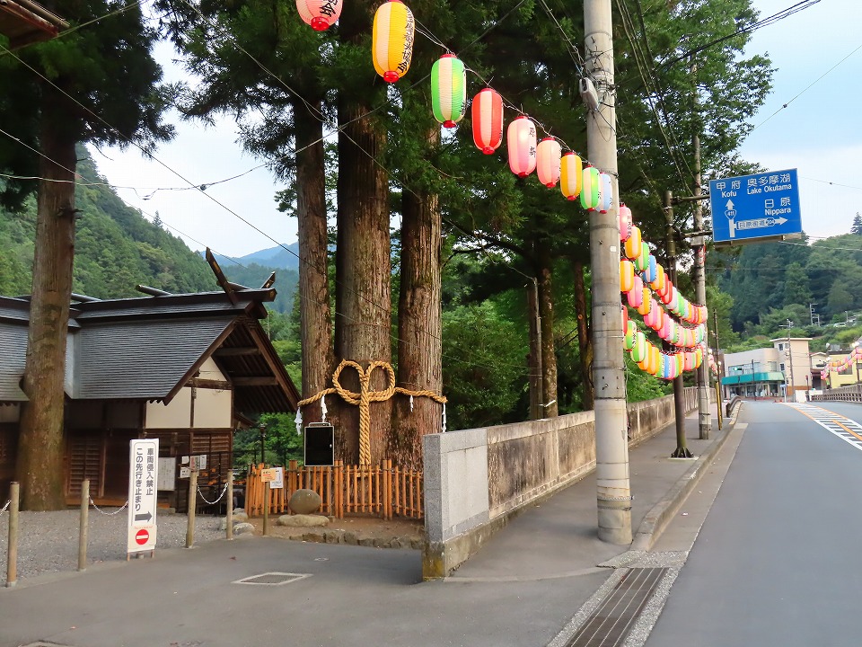 しかし暦の上では秋、急に日が短くなった気がします・・・。大氷川橋に架けられた提灯も灯り、三本杉も美しい!